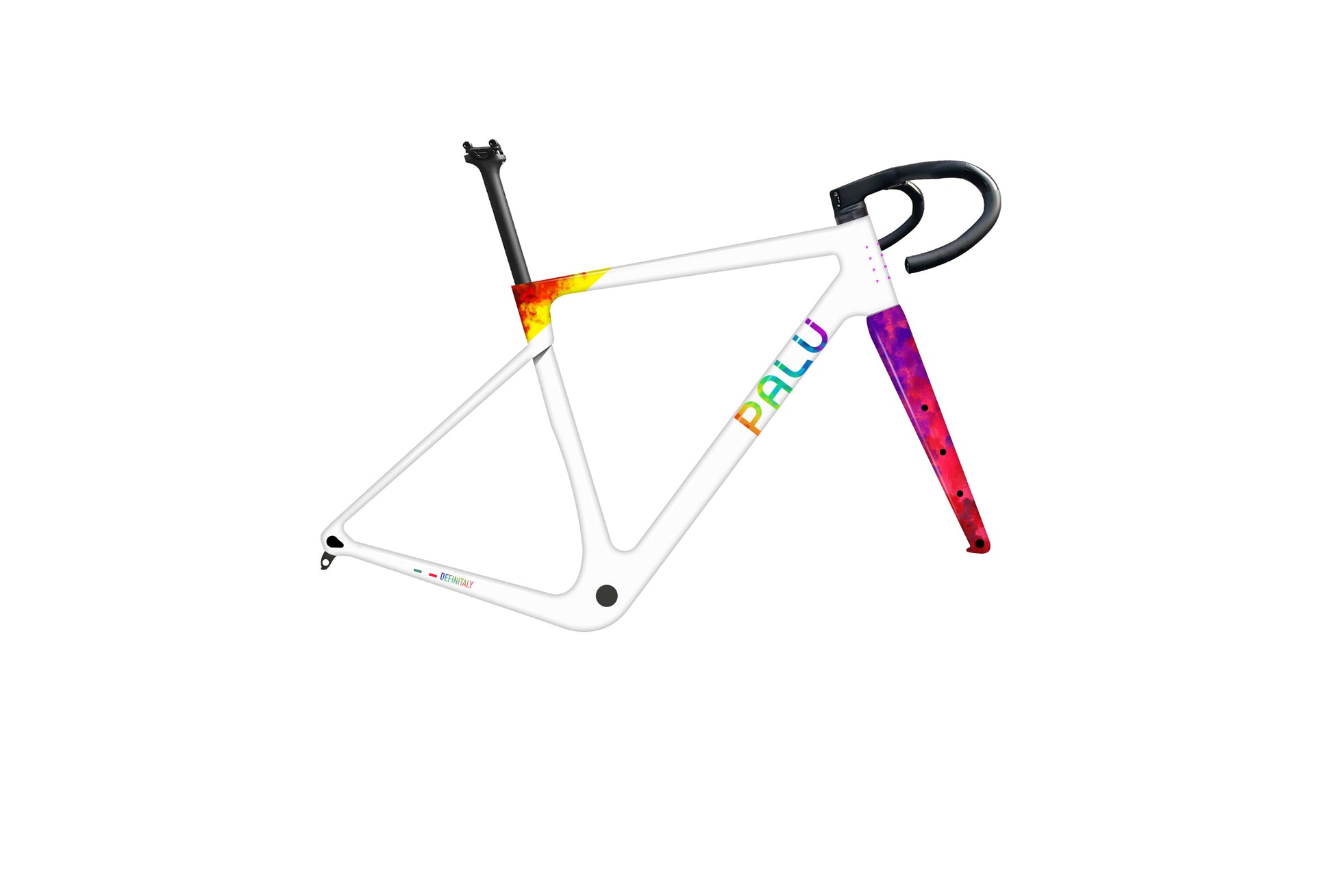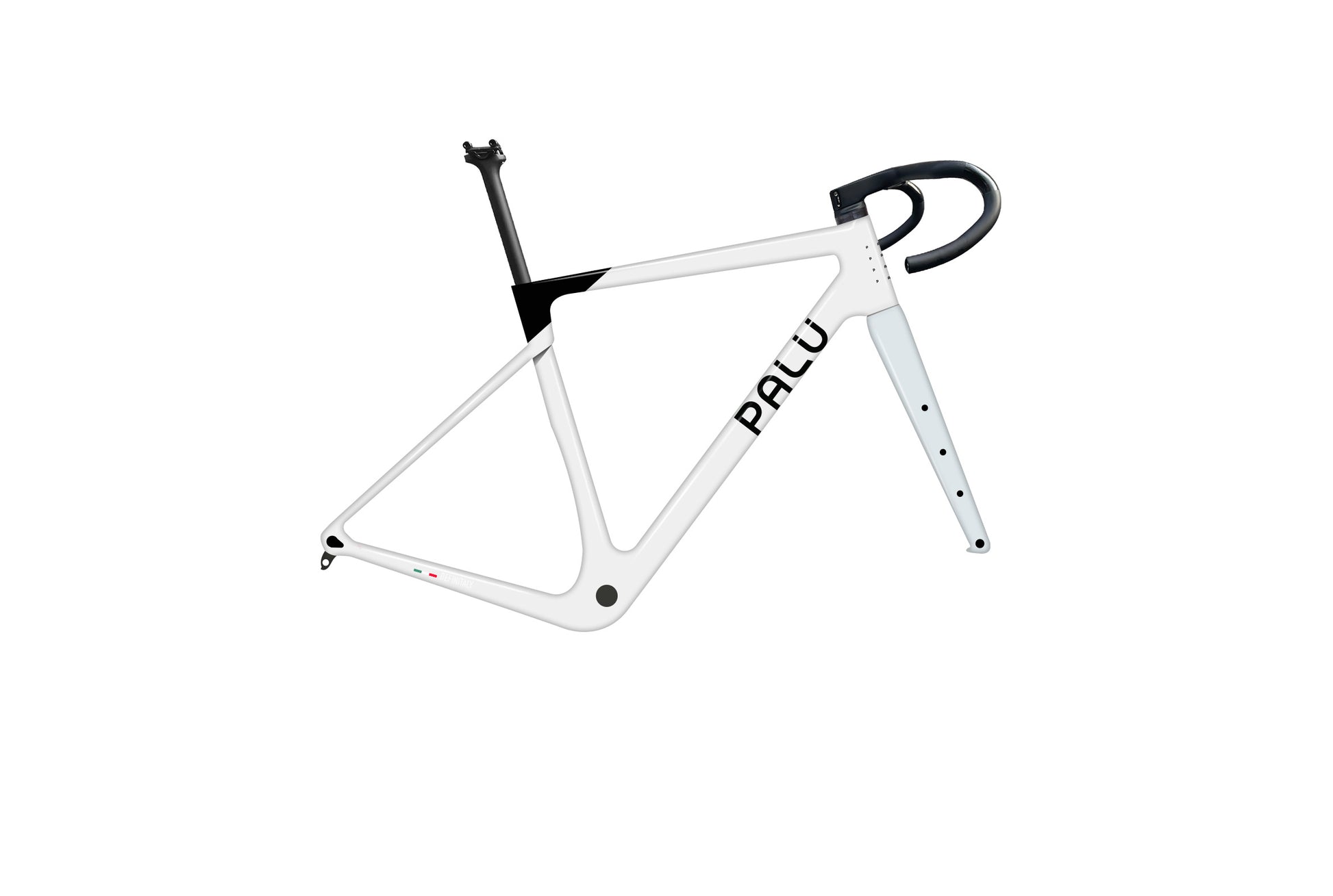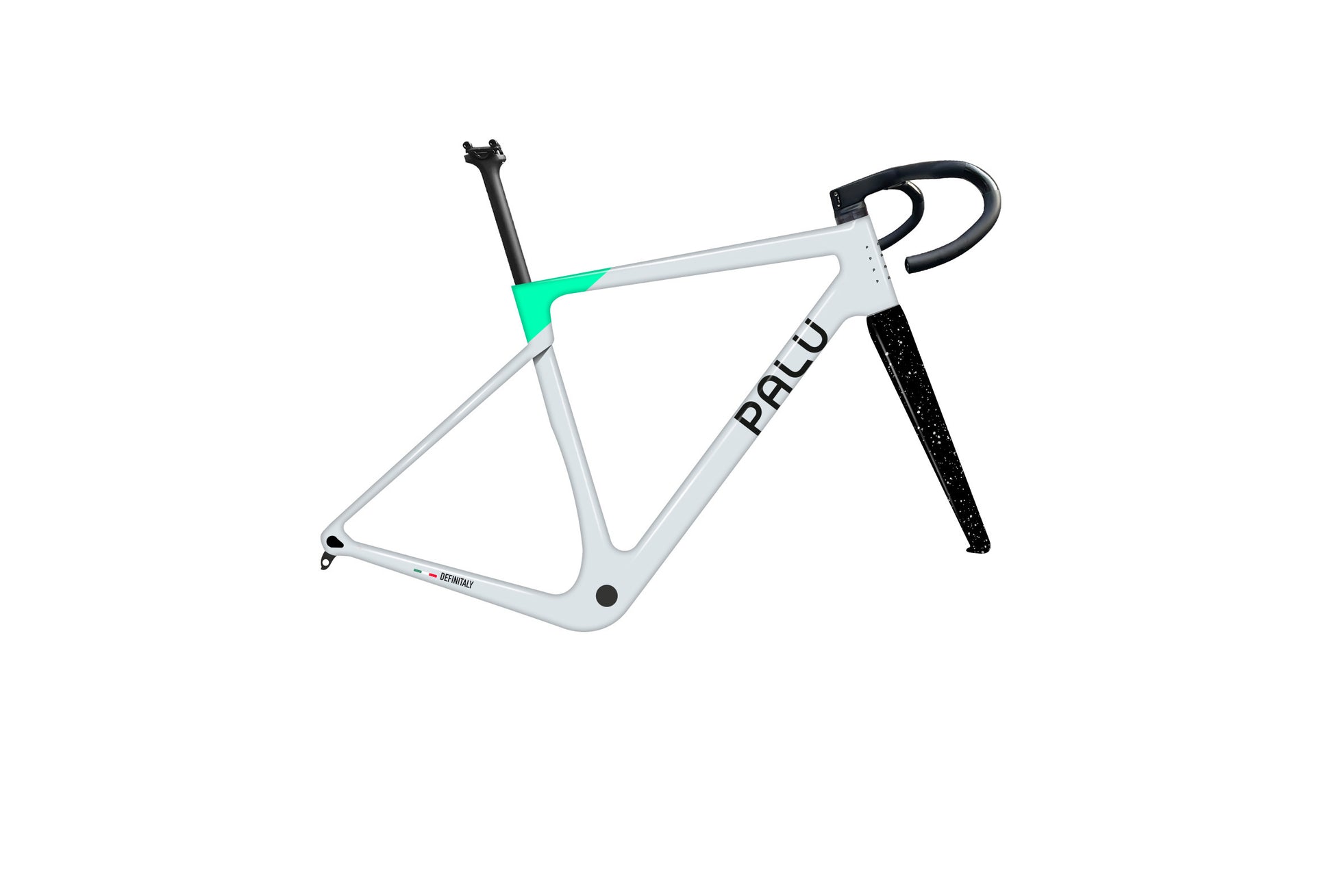 - Telaio e forcella PALU GREENTEGRATA [+] in fibra di carbonio Toray T700-T800 mix, predisposto per passaggio cavi interni, perni passanti e impianto frenante a disco idraulico