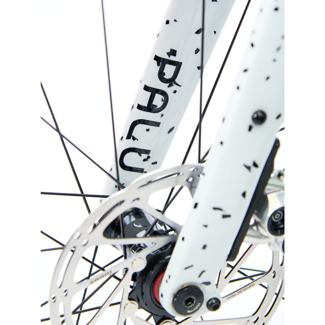 Telaio e forcella PALU GREENTEGRATA [+] in fibra di carbonio Toray T700-T800 mix, predisposto per passaggio cavi interni, perni passanti e impianto frenante a disco idraulico
