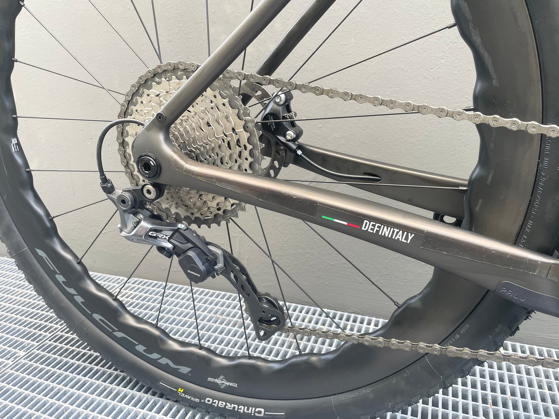 Equipped with a Shimano GRX 600 (40T 11/44T) groupset, Fulcrum Soniq carbon tubeless wheelset, Pirelli Cinturato Gravel M 45mm tires, Pro bar tape, and Selle San Marco Shortfit gravel saddle.